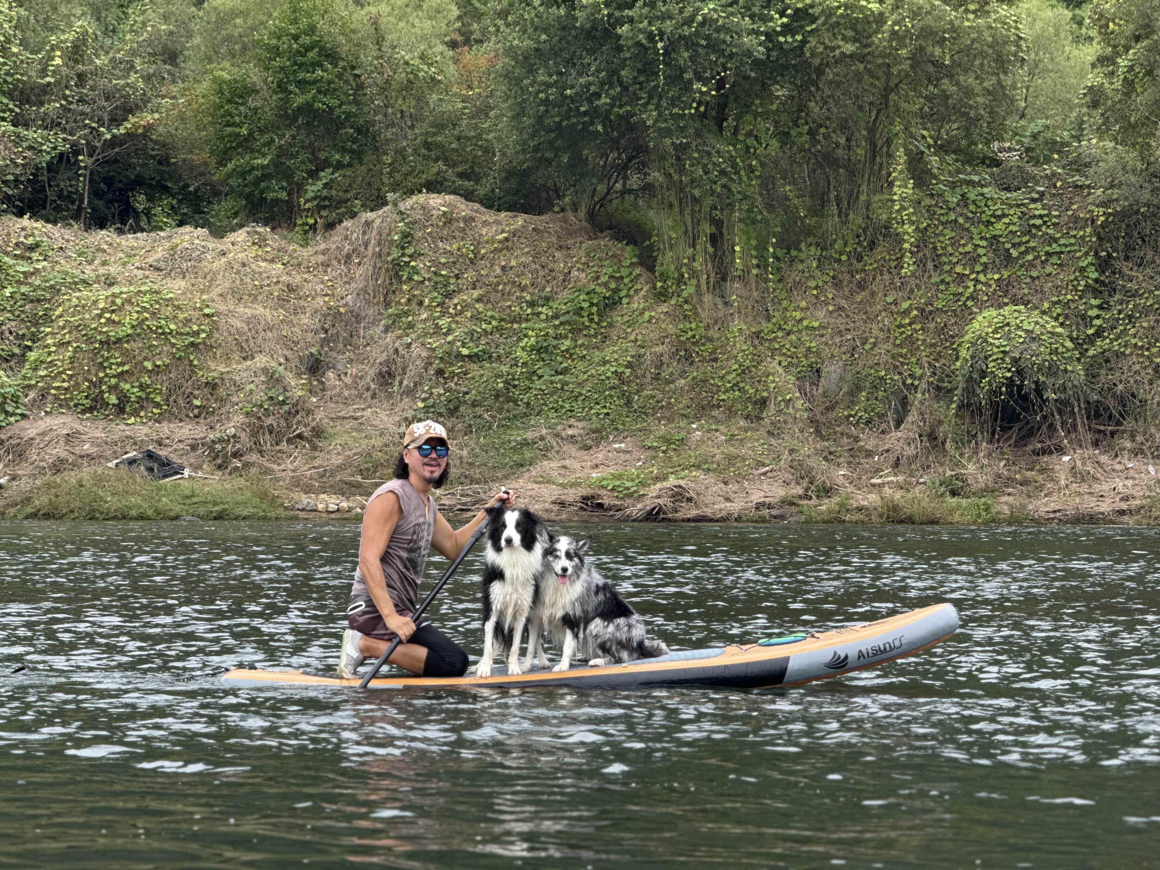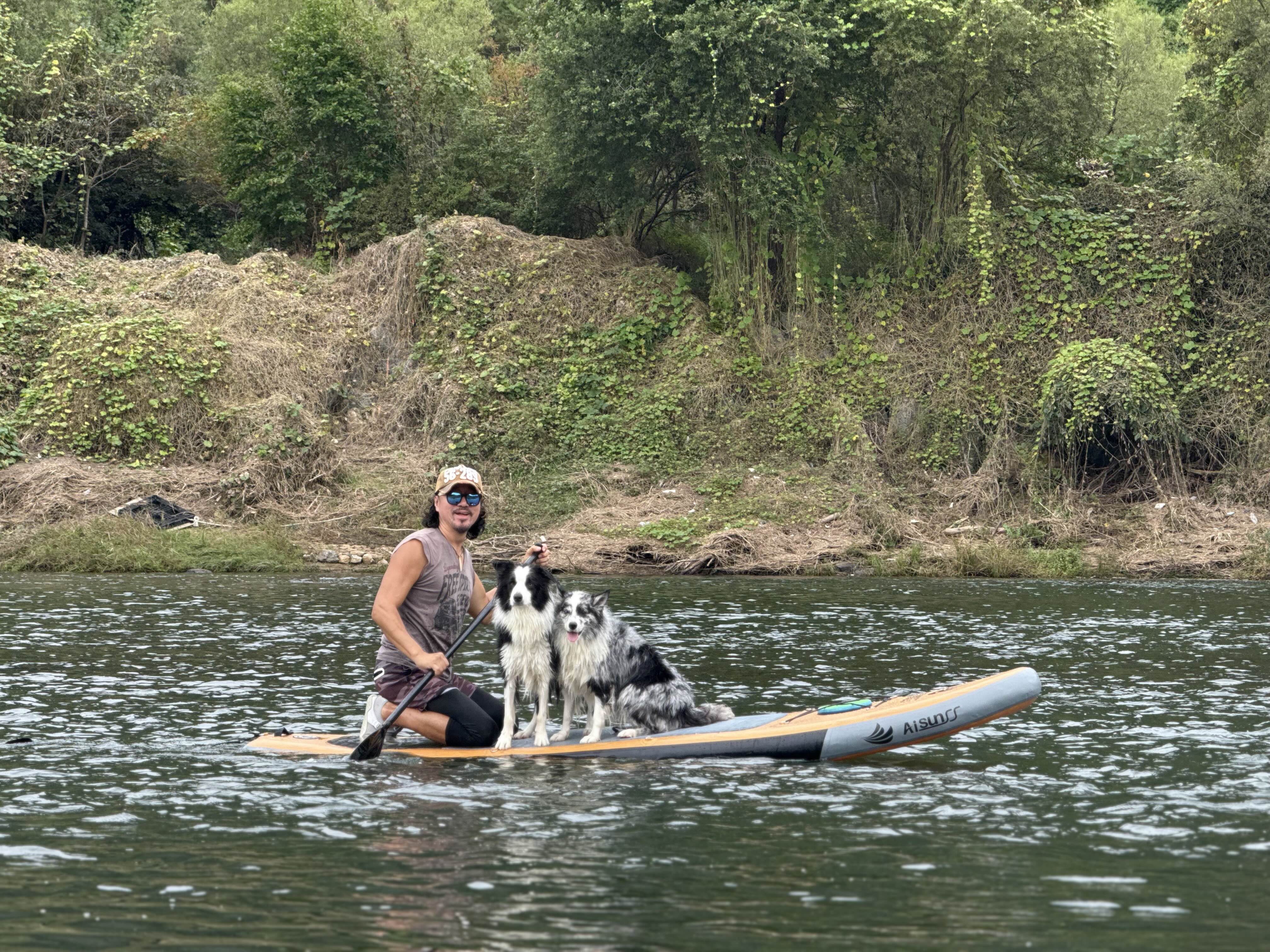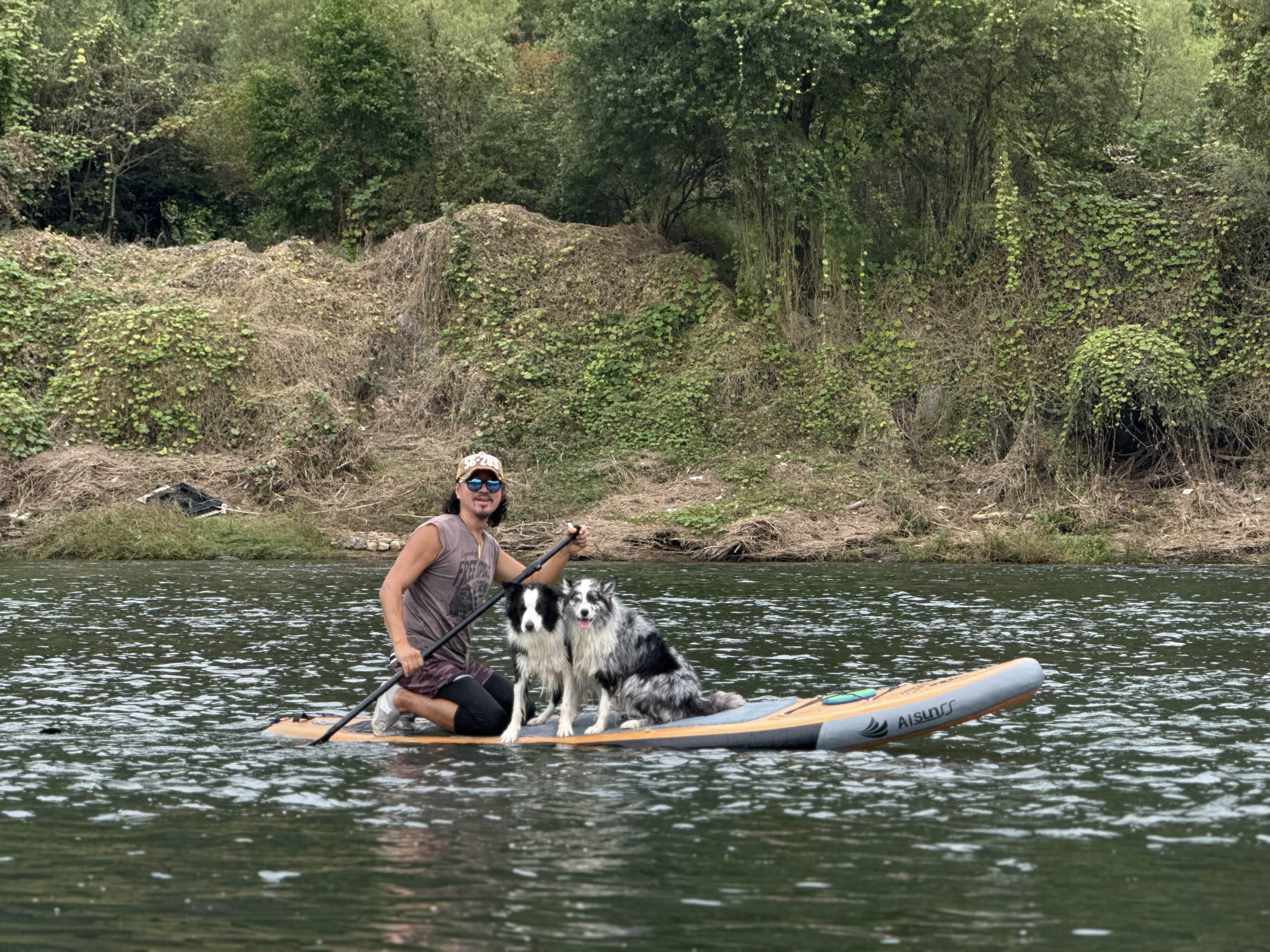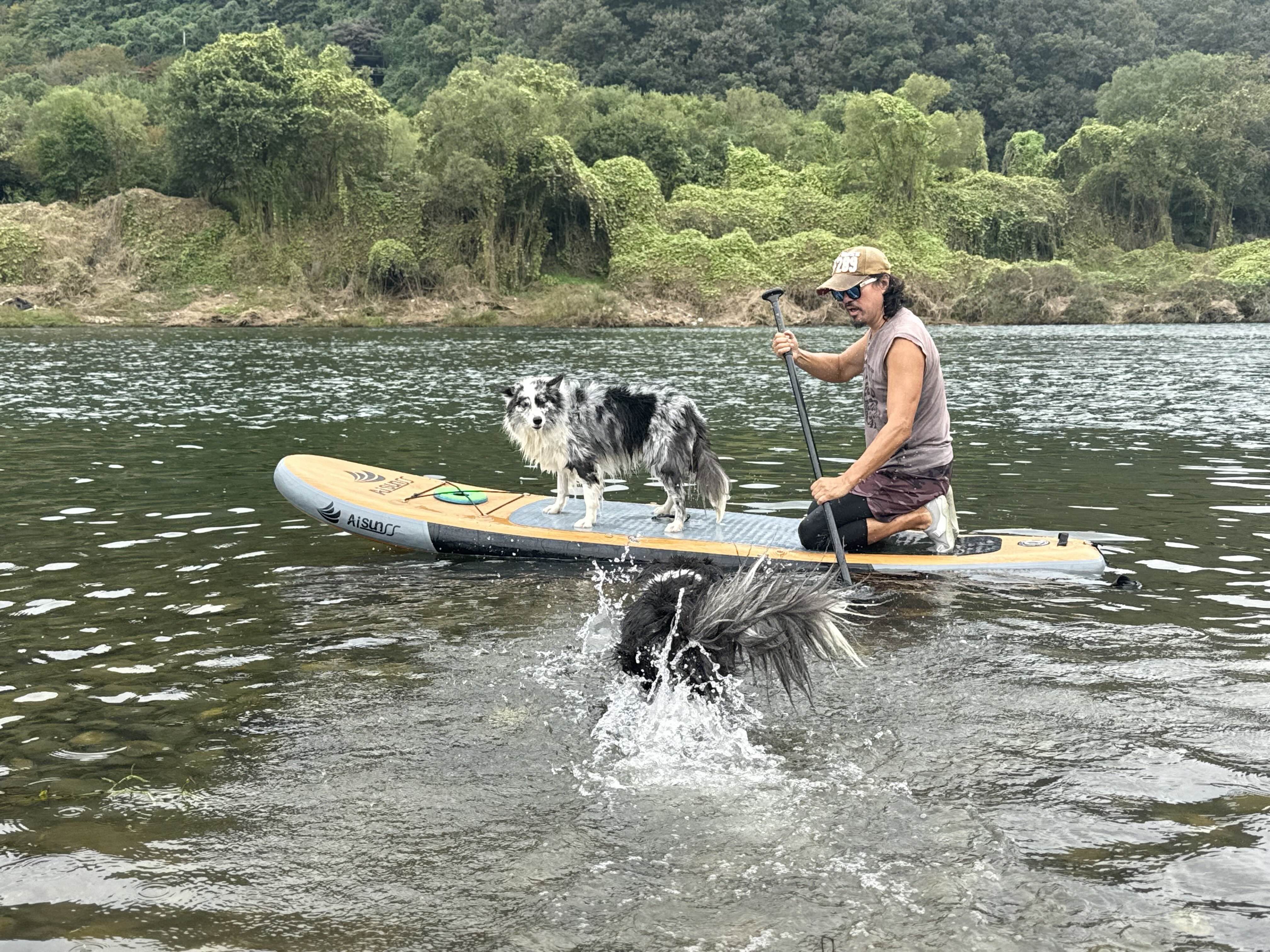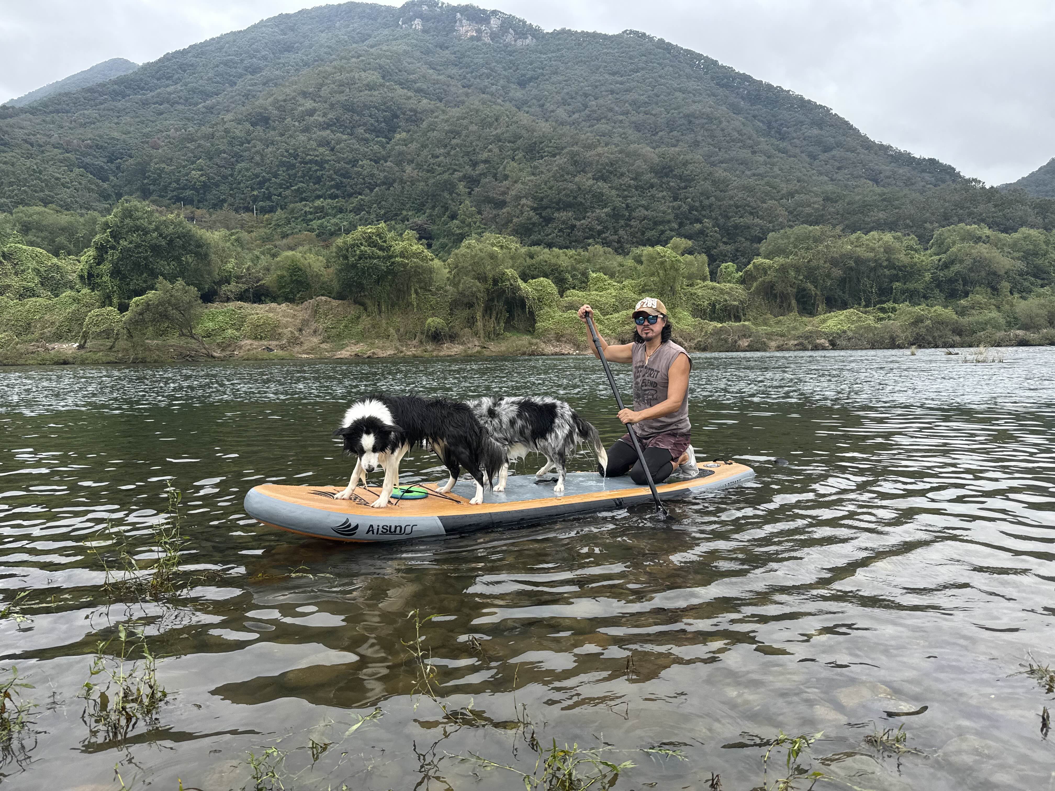 댕댕이들과 패들보딩중인 @다스탄님 ㅎㅎ