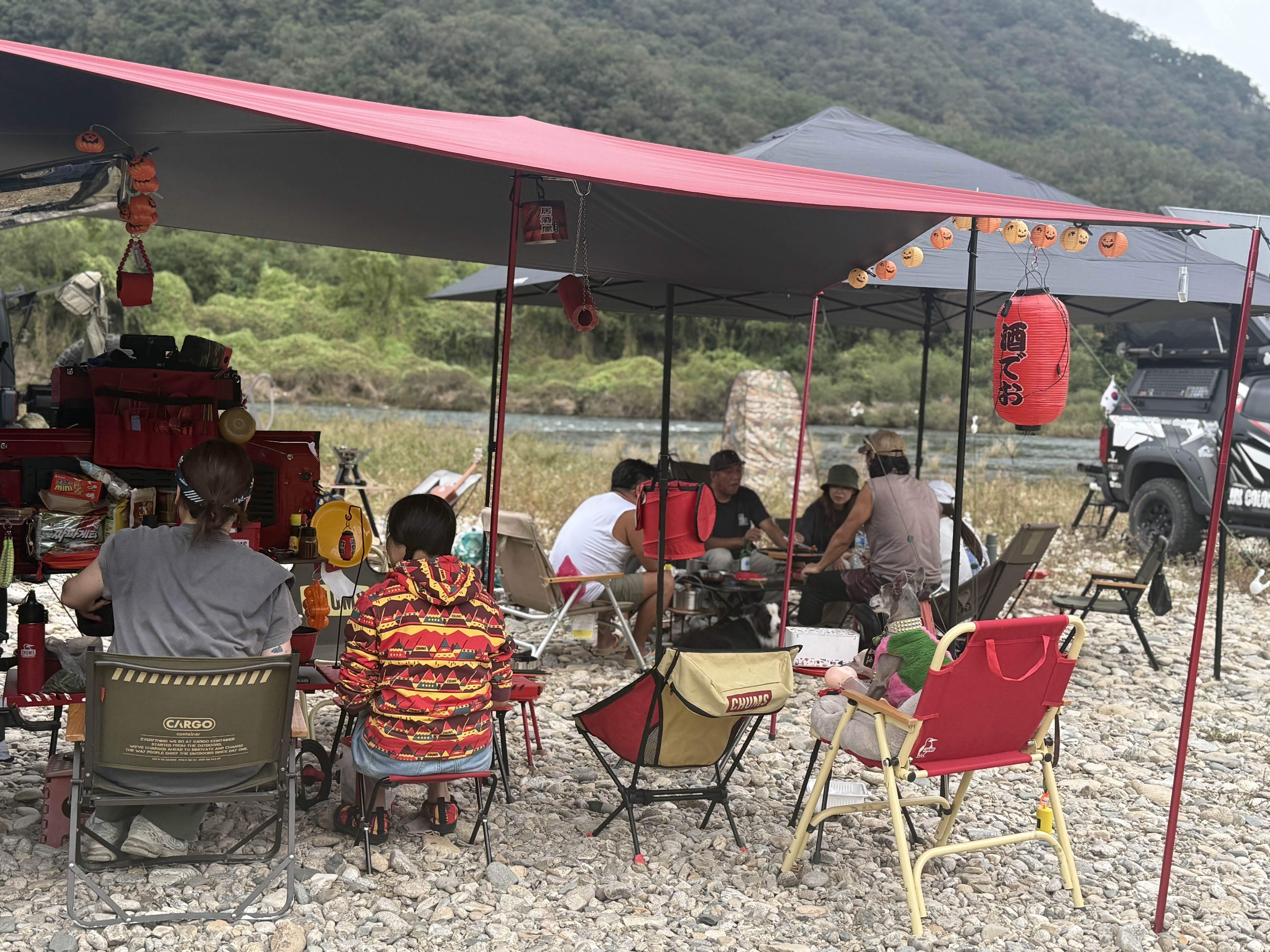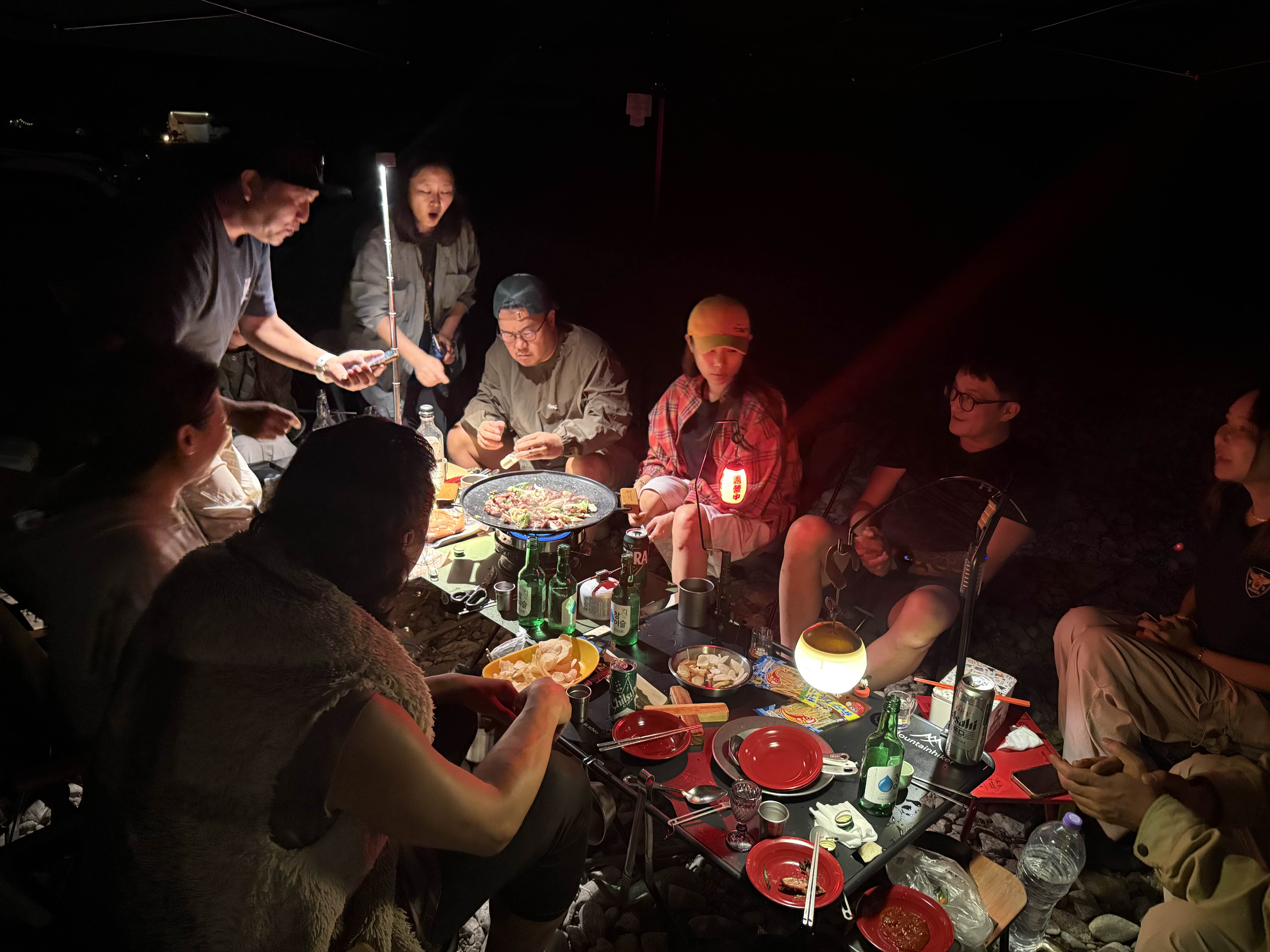 일부 멤버들이 전날부터 미리 가서 자리를 잡아놓고 캠핑을 시작